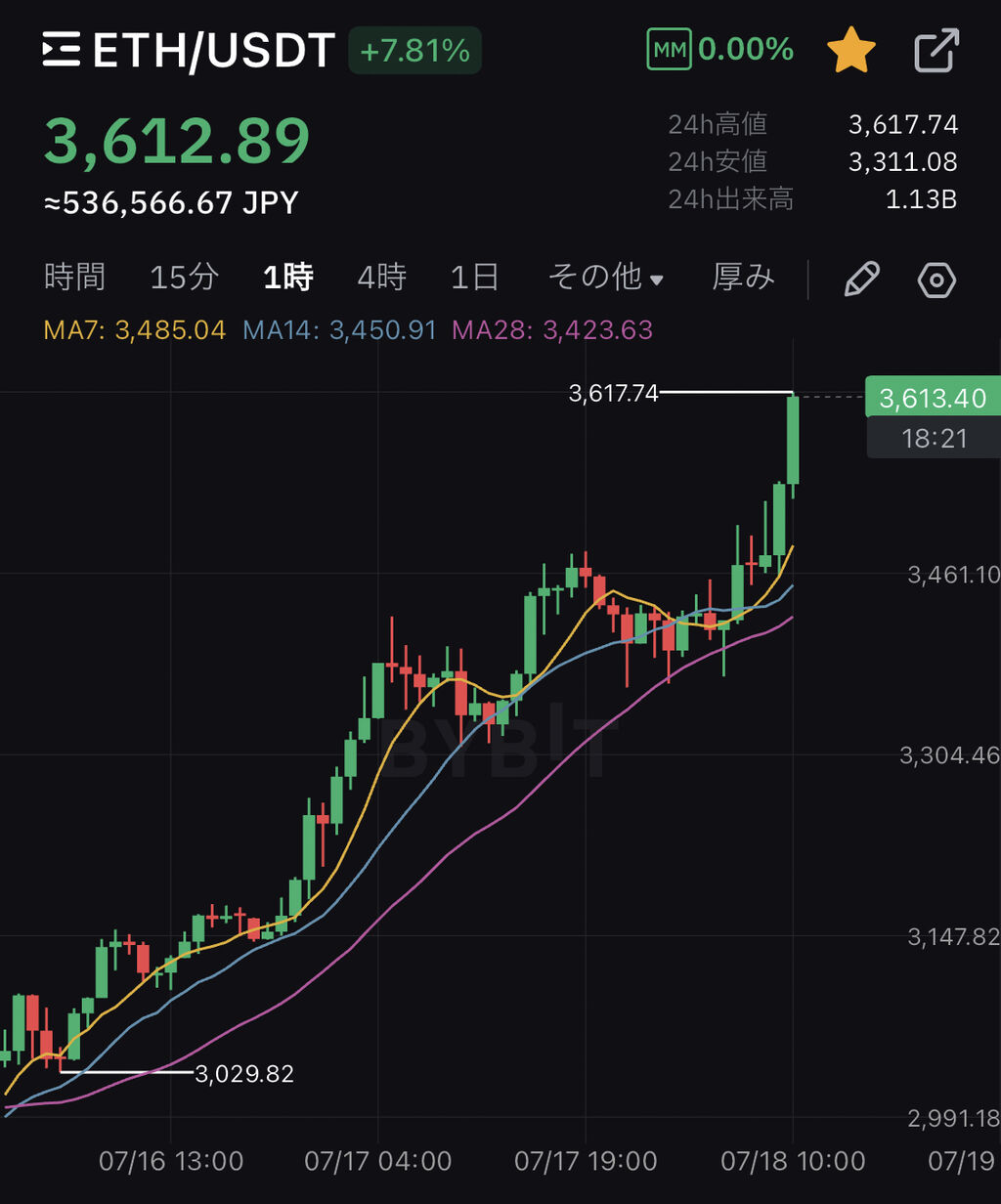 【速報】仮想通貨イーサリアム3,600ドル(53万円)を突破するwwwwwwwwww【ETH】