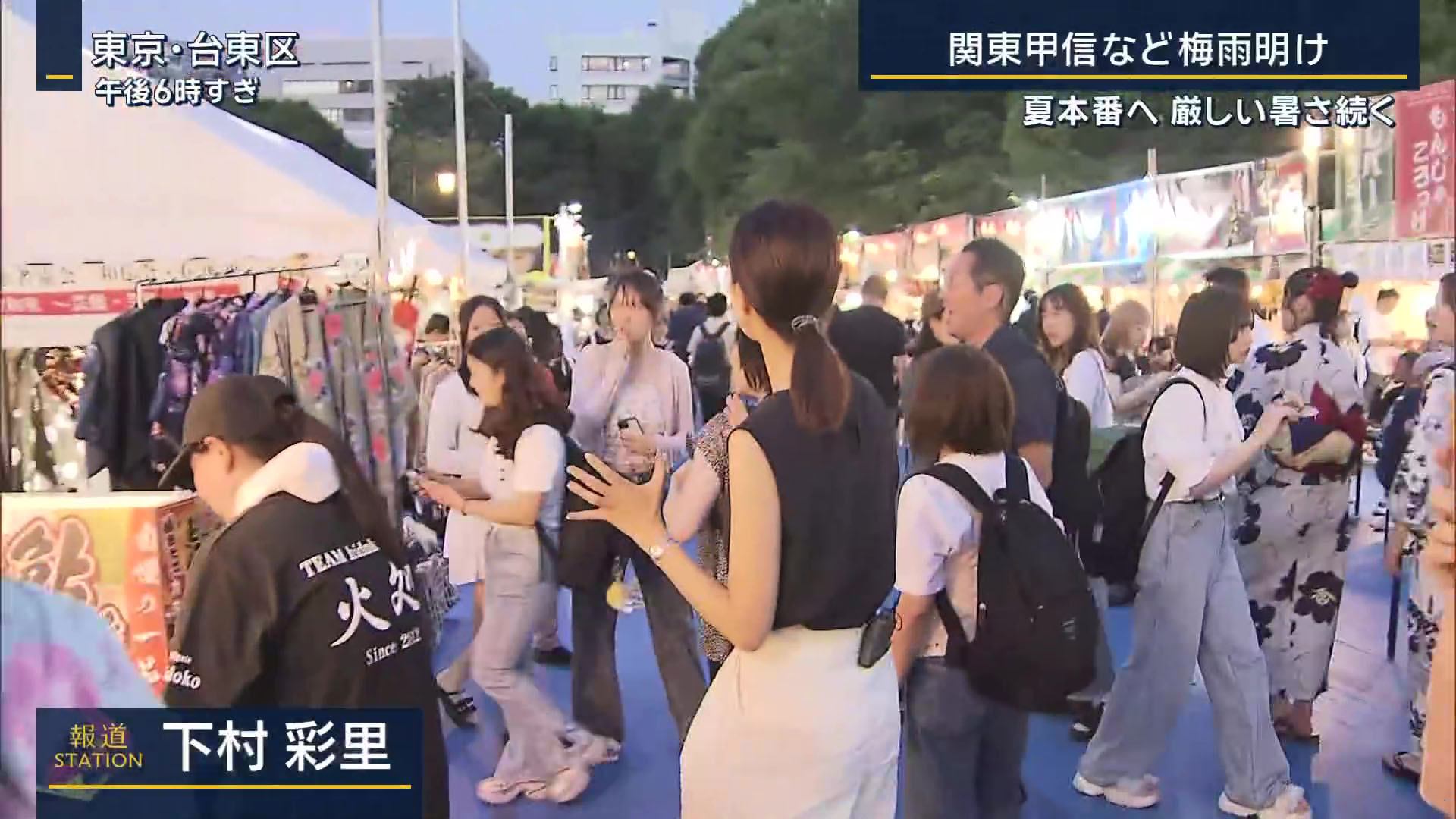 ノースリーブで梅雨明けをレポートした下村彩里アナです! [2025年7月18日 報道ステーション]