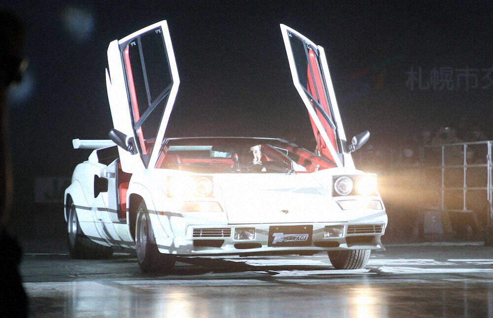 日本ハムのファンフェスティバルにランボルギーニのカウンタックを運転して登場する新庄監督(撮影・高橋 茂夫)