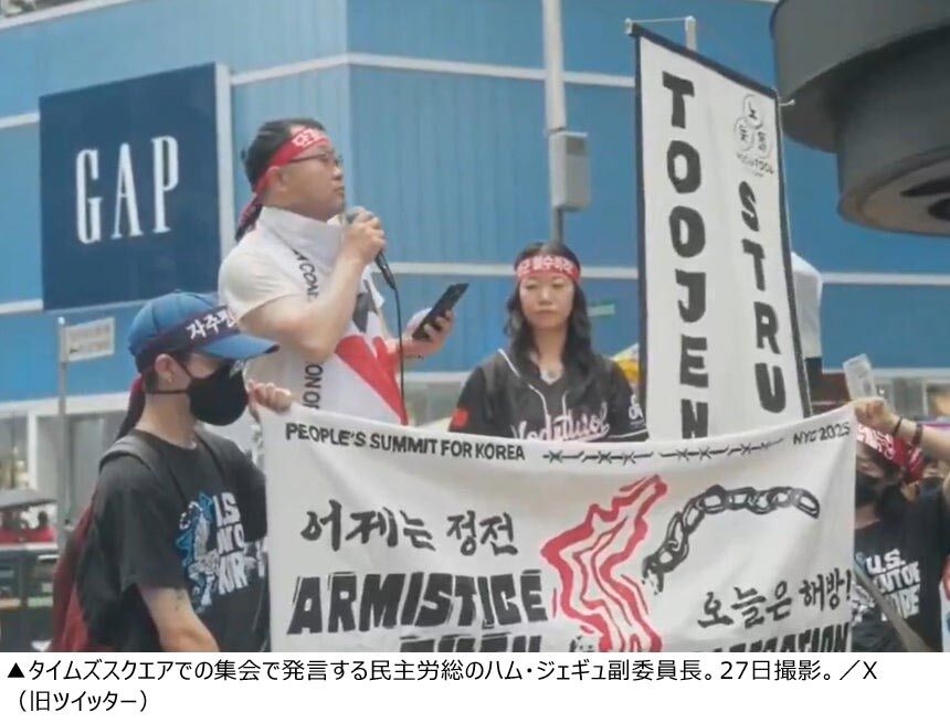 民主労総「支配のバトンが日本から米国に受け継がれただけ。韓国は米国の雇い兵ではない」 関税交渉中にNYで反米デモ