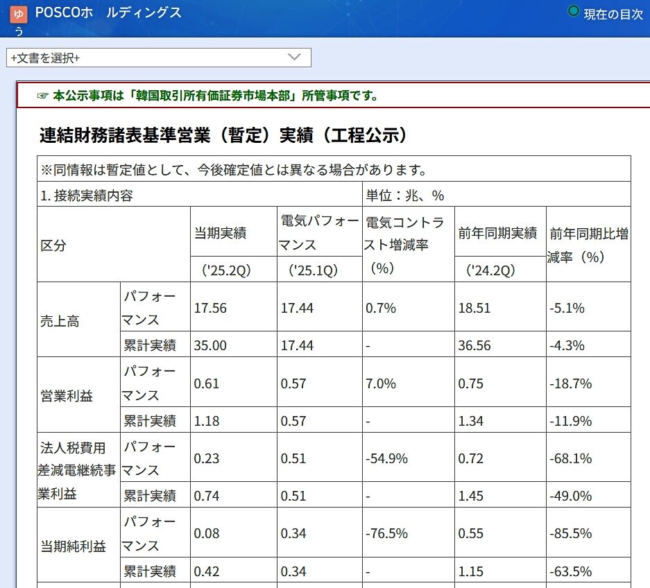 2025年07月31日、韓国の鉄鋼最大手『POSCO(ポスコ)』が2025年第2四半期の業績が公示されました。