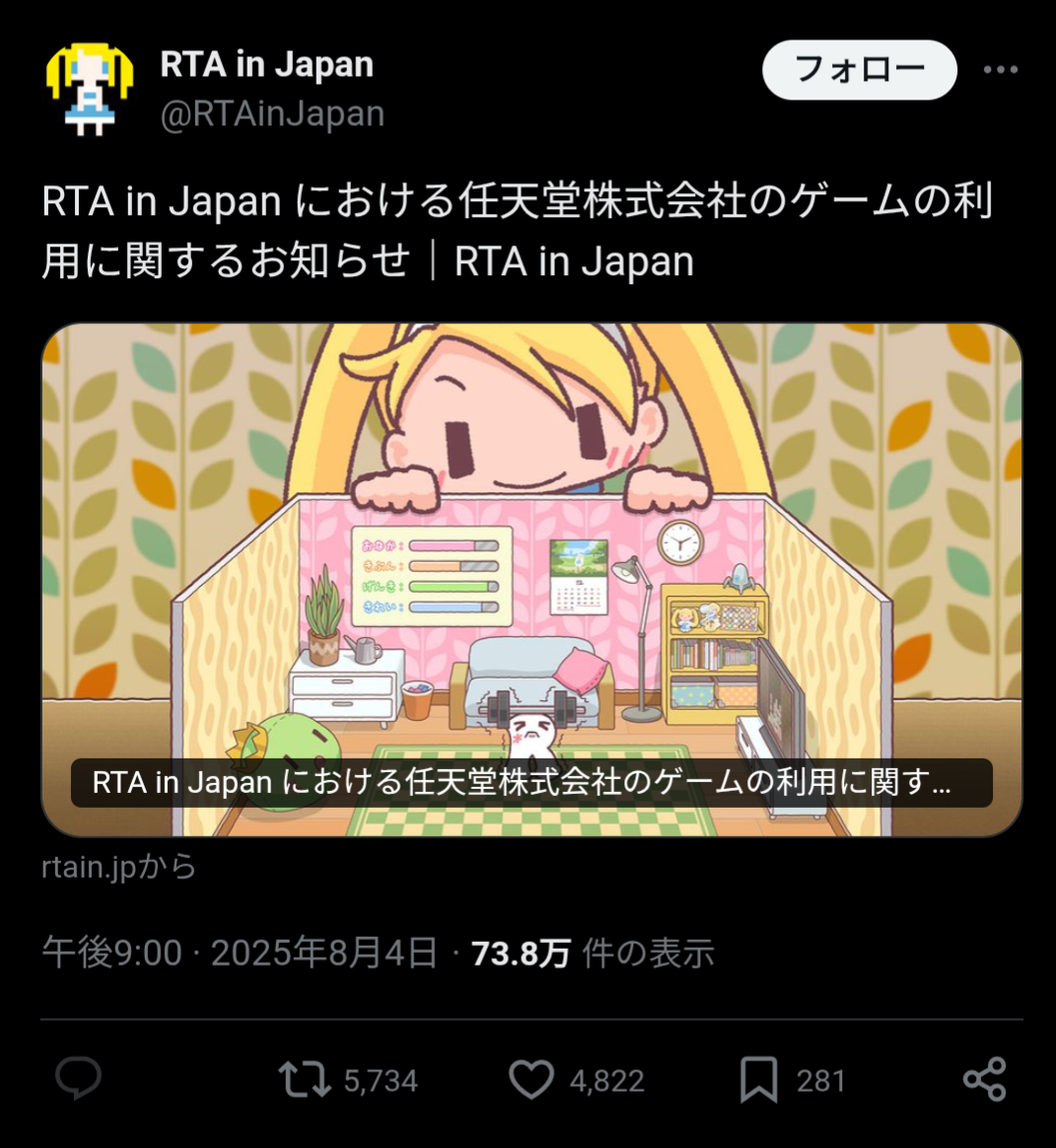 【悲報】RTA in Japan、任天堂から直接怒られ任天堂ゲー禁止になる