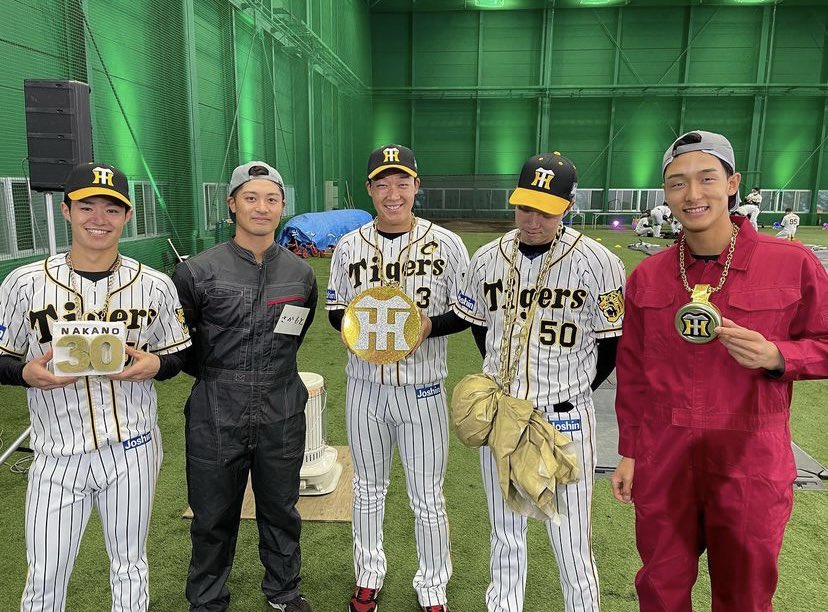 最後は、今季「虎メダル」誕生から13本塁打を放ち、1番メダルをかけた大山に。本家のパドレスと同様、ロゴが回転する「スーパー虎メダルDX」が贈られた。大山は「シーズン中も、どうにか回せないか(坂本と)一緒に考えたんですけど、どうしても回らなくて…」と秘話を明かし、「家に飾ります」と気に入った様子で笑顔を見せた。