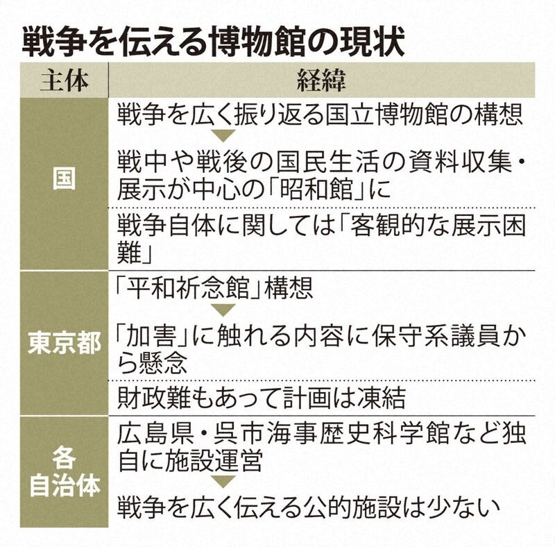 【図解】「客観的」困難、財政難…戦争を伝える国内博物館の現状