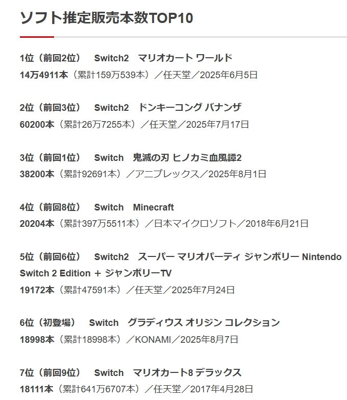 18998本(累計18998本)/KONAMI/2025年8月7日