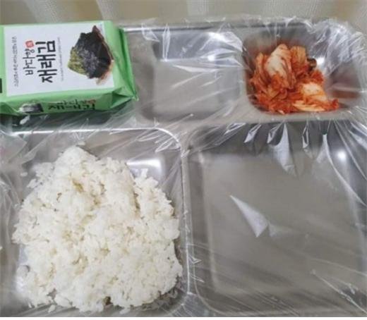 その写真を見ると、ご飯とキムチ、そして使い捨ての包装の海苔だけが置かれていた。