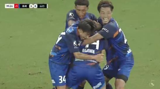 「劇的ヴィヴィほー❕」長崎 3連勝で9試合無敗!DF江川湧清が後半ATにヘッドで劇的決勝ゴール‼山口に1-0で勝利し3位をキープ