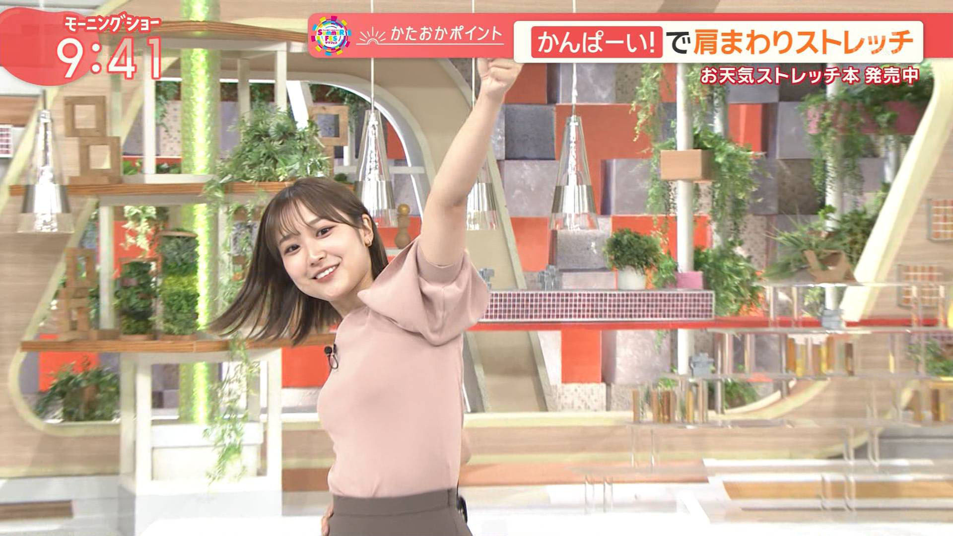 松岡朱里アナのストレッチをGIF動画付きで! [2025年8月7日、5日、4日、1日 モーニングショー]