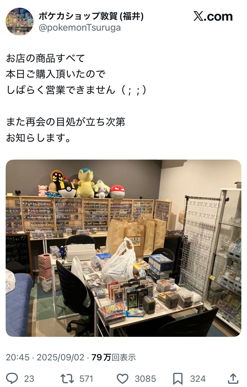 【悲報】ポケカショップ「店の商品全部購入されたのでしばらく営業出来ません!」