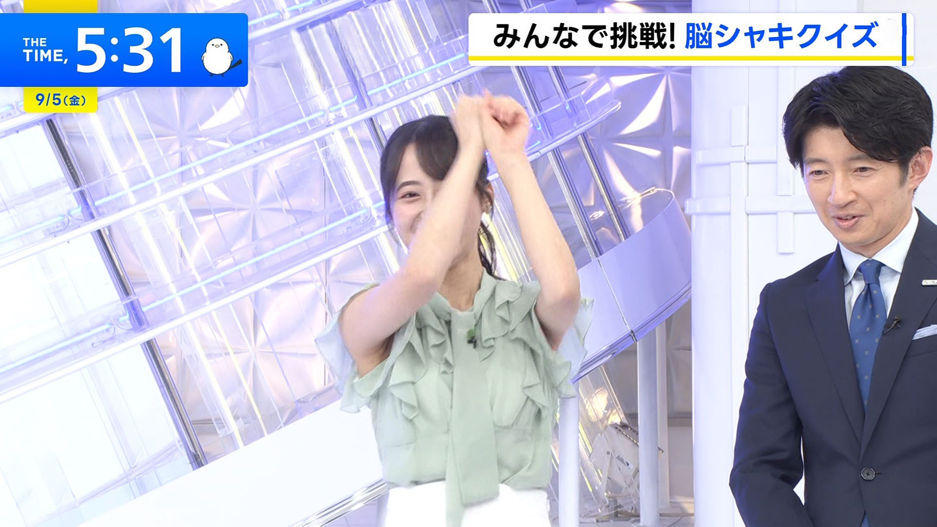 現役女子大生・齊藤美雅キャスターの脇全開ポーズがセクシーでした! [2025年9月5日 THE TIME,]