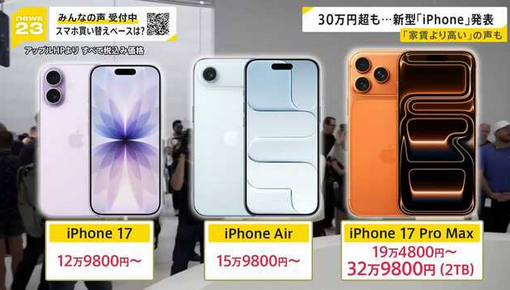 【今使っているそのスマホ、いつ買い替えますか?】「家賃より高い」の声も・・・新型iPhoneシリーズ発表 最上位モデル“フルスペック” 32万9800円