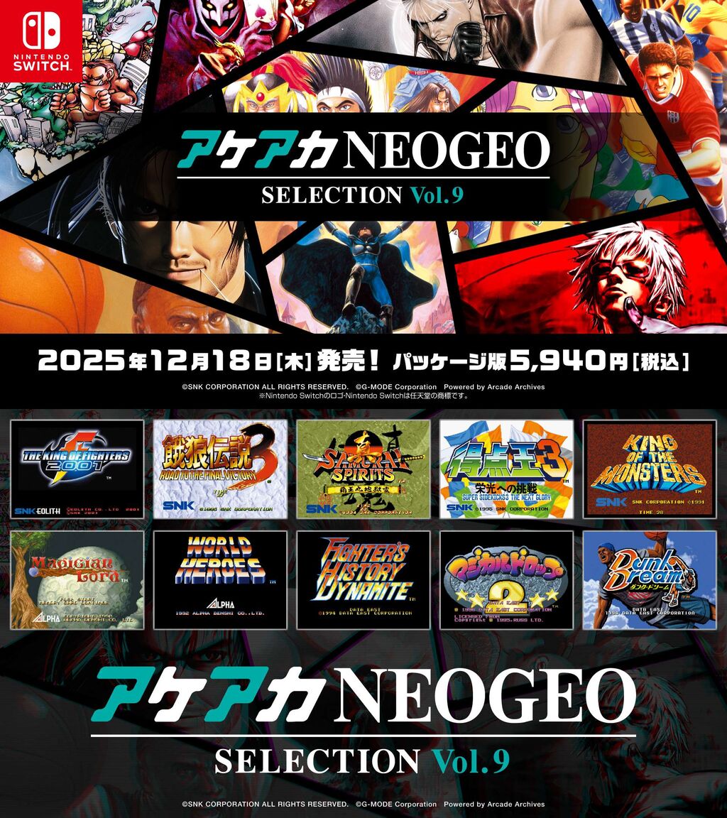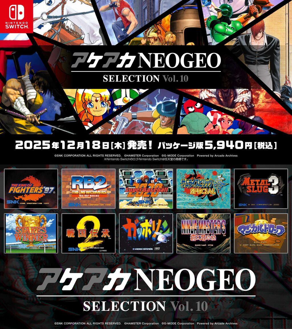 Switch『アケアカNEOGEO セレクション Vol.7、8、9、10』が発売決定!