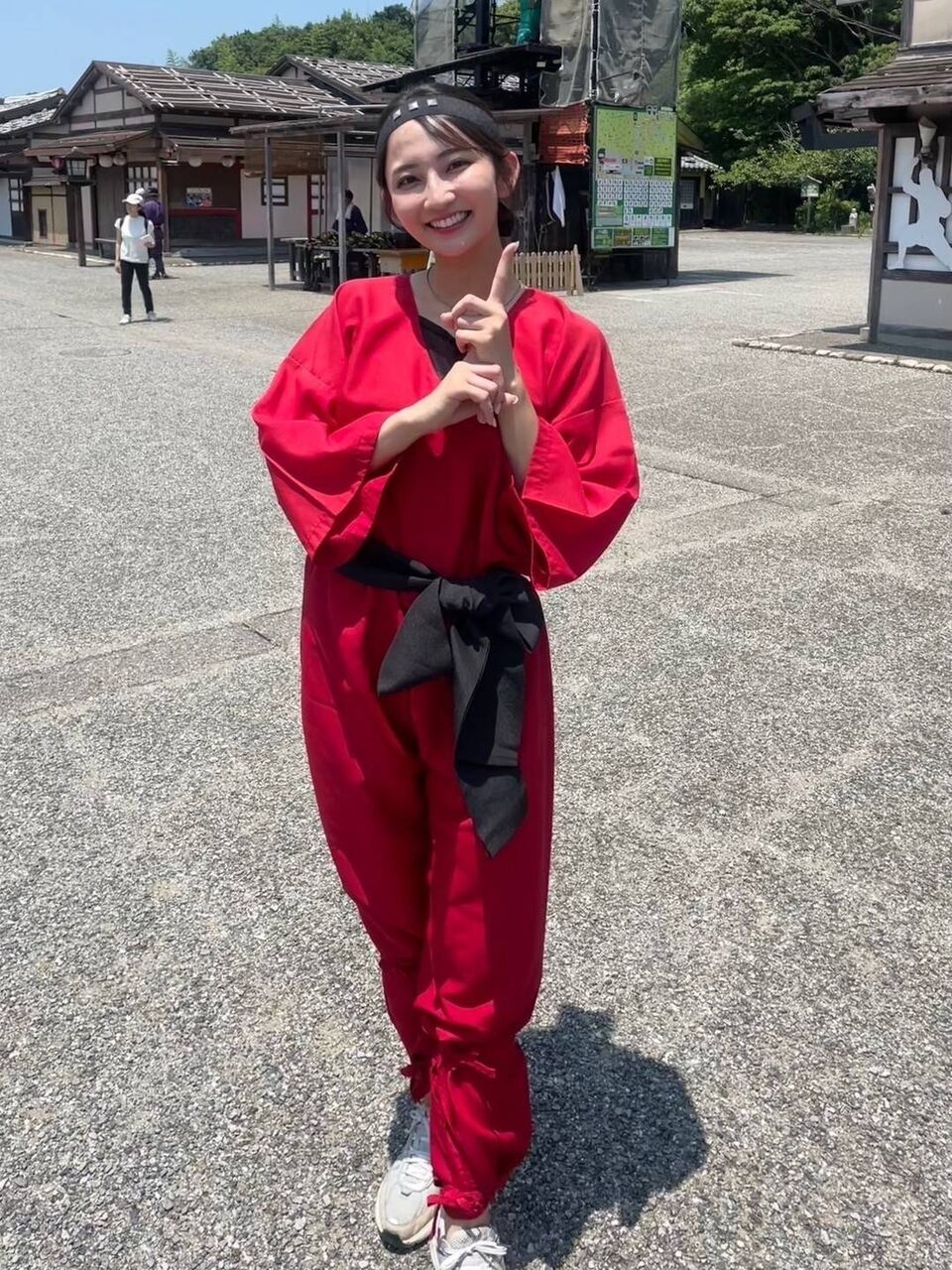 三重県伊勢市にある「ともいきの国 伊勢忍者キングダム」で、赤い忍者服の?くノ一?コスプレ姿を披露した。