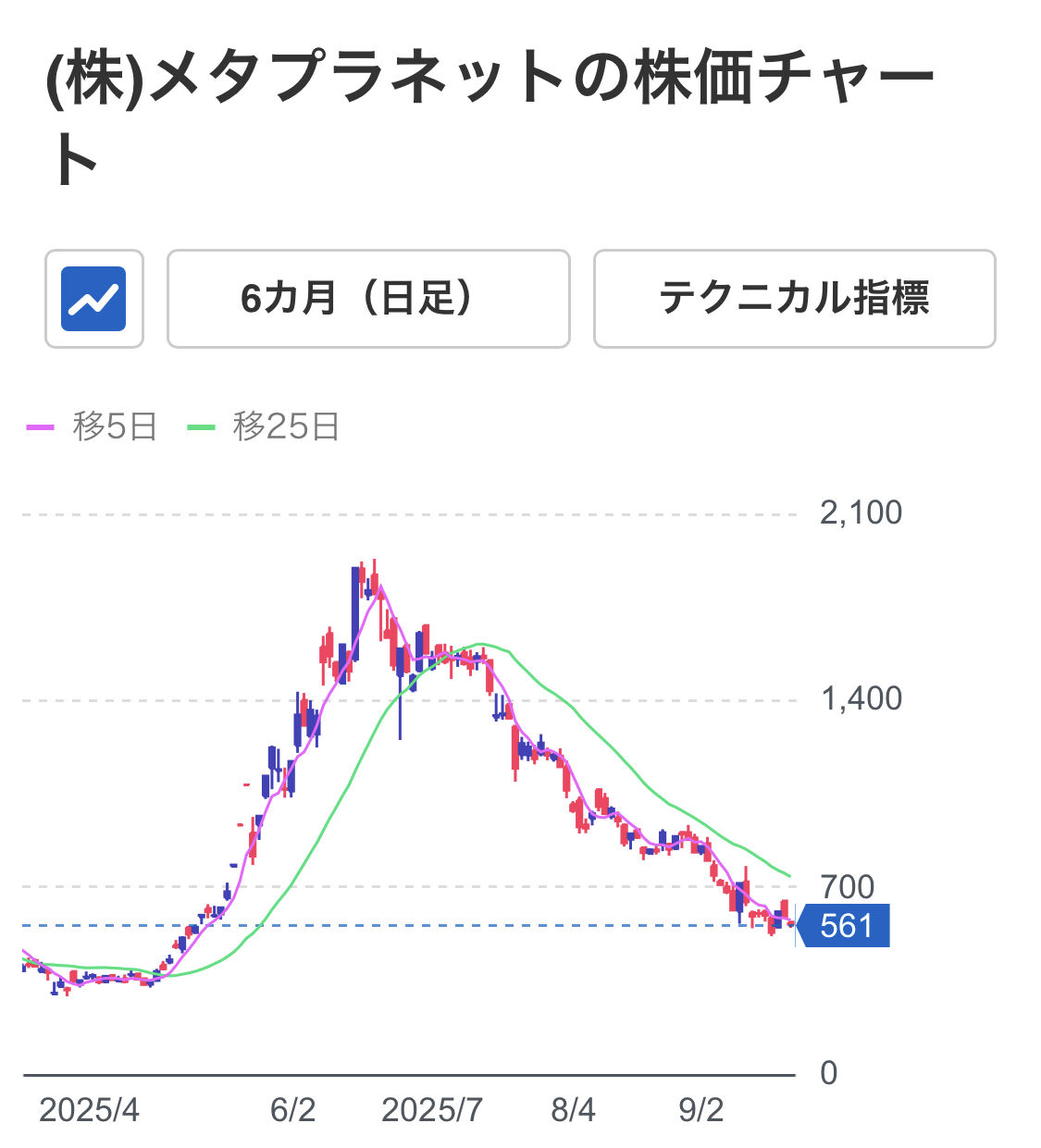 参照元:https://finance.yahoo.co.jp/quote/3350.T/chart?styl=cndl&trm=6m&ovrIndctr=sma%2Cmma