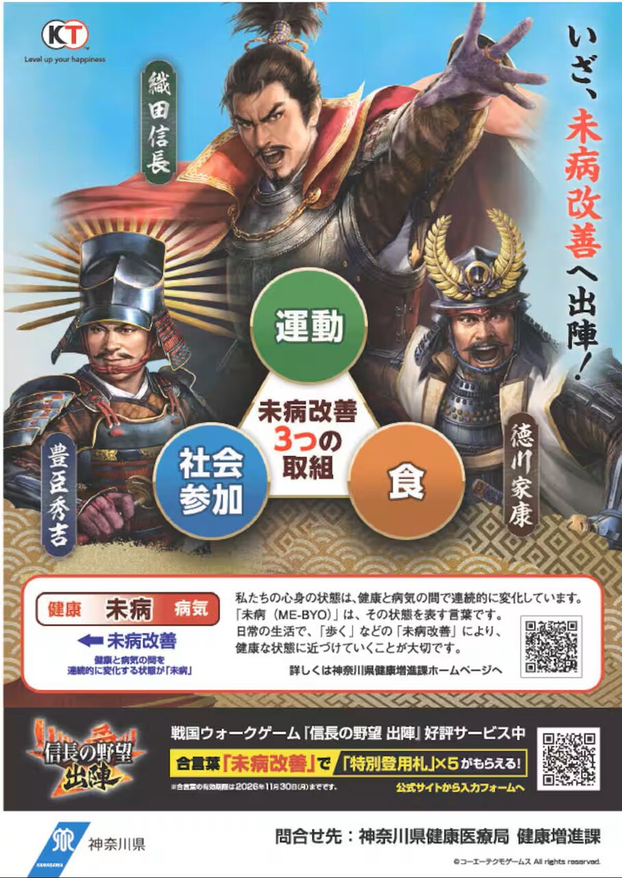 神奈川県が「信長の野望」とタッグを組む!病気予防・未病改善を目指す