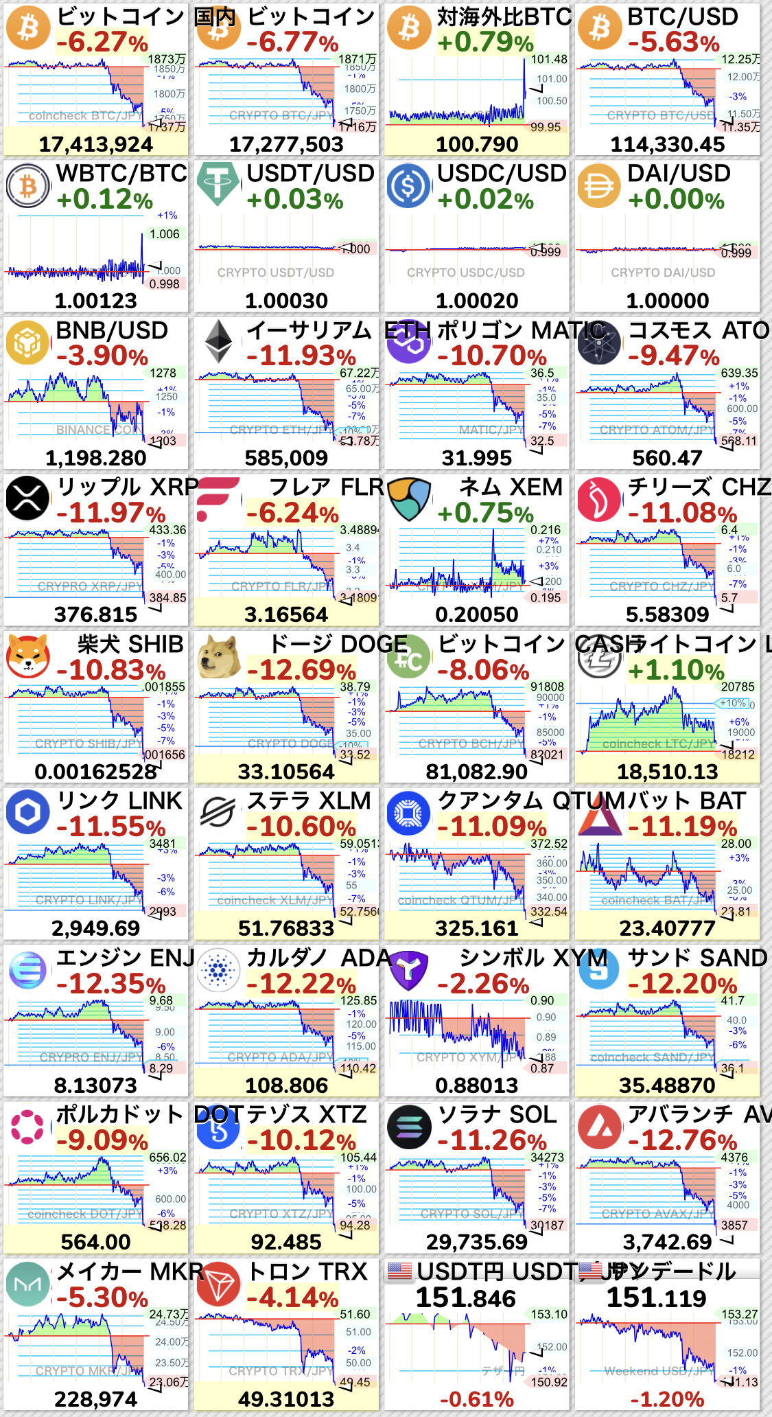 【速報】ビットコイン始め仮想通貨が暴落。トランプ大統領の中国への関税100%発言で