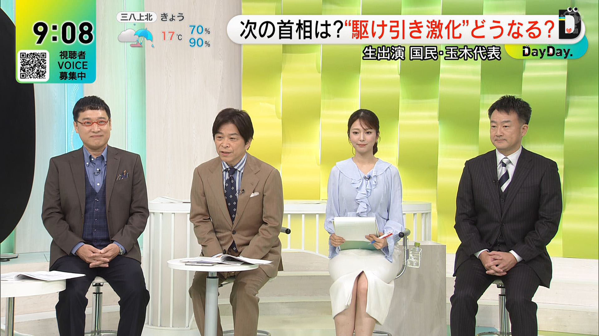 黒田みゆアナの深く切れ込んだスリットからかなり太股が見えていました! [2025年10月16日 DayDay.]