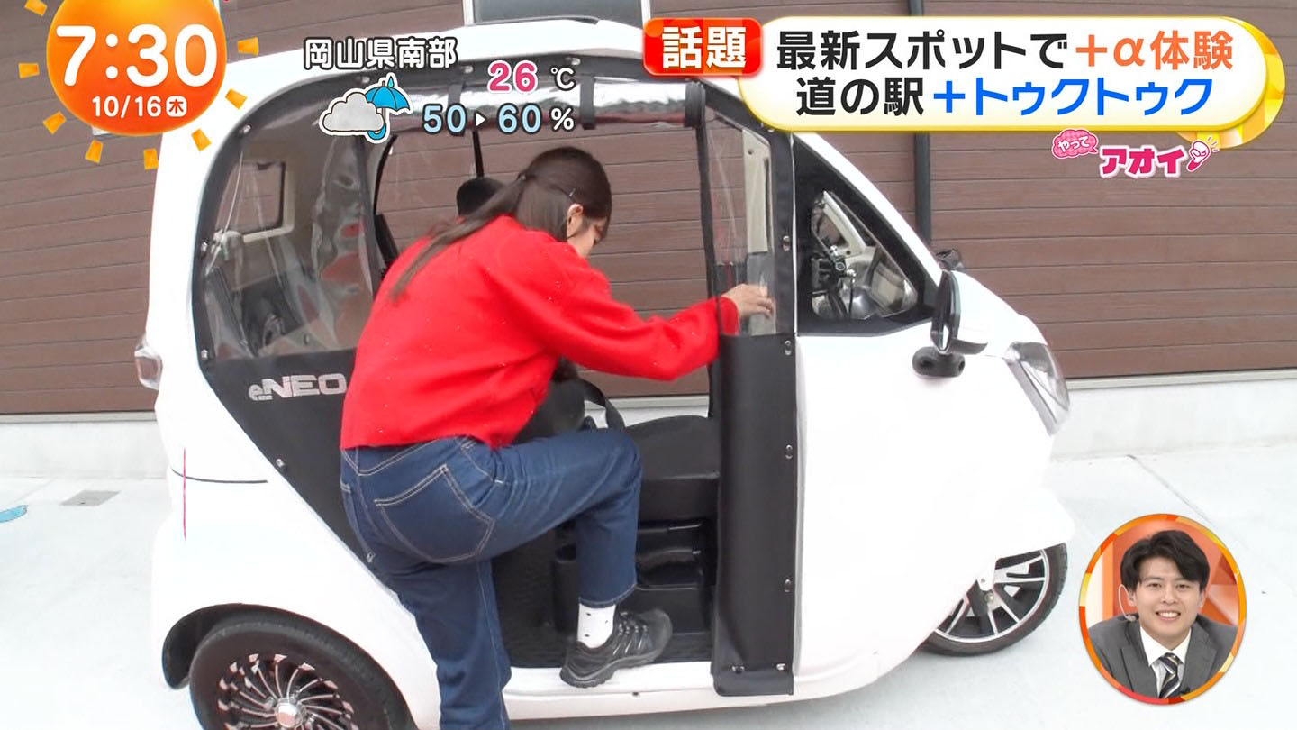 ピタパンで「トゥクトゥク」に乗り込む原田葵アナです! [2025年10月16日 めざましテレビ]