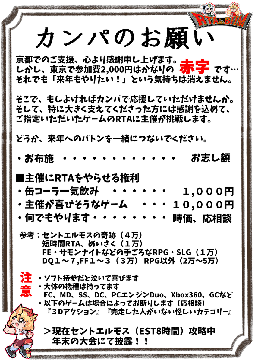 有名RTAイベント「任天堂に従って参加費2000円にしたら悲惨な赤字です……」