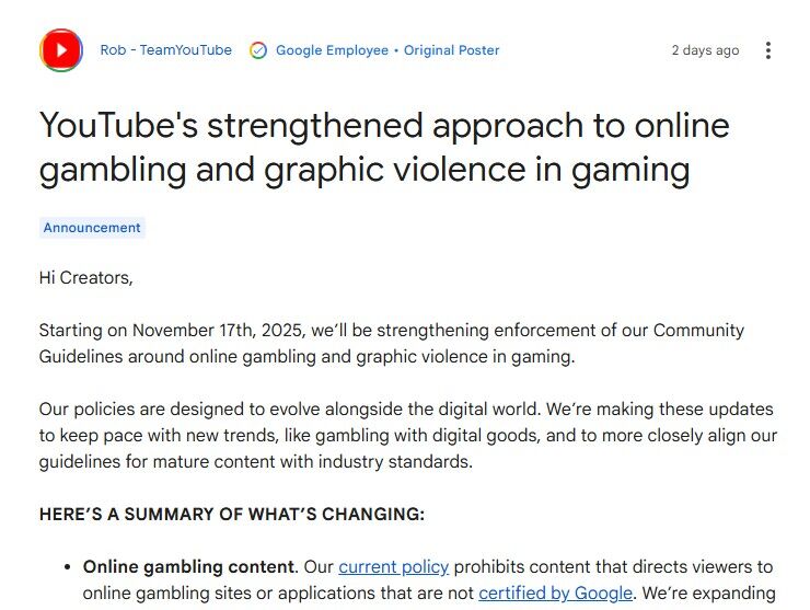 『YouTube』、暴力ゲームとギャンブルを18禁扱いへ