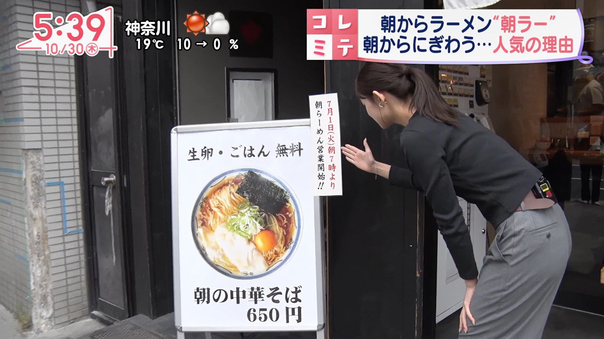 浮き出たブラ線とお尻がセクシーだった田﨑さくらアナのレポートです! [2025年10月30日 Oha!4]