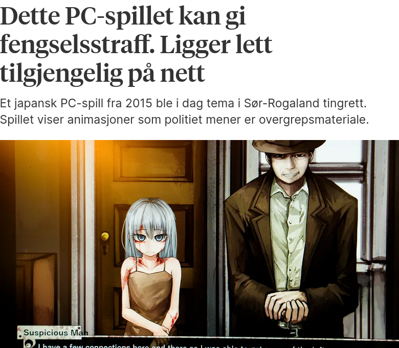 【悲報】日本の同人ゲーをプレイしたノルウェー人、刑務所にぶち込まれる