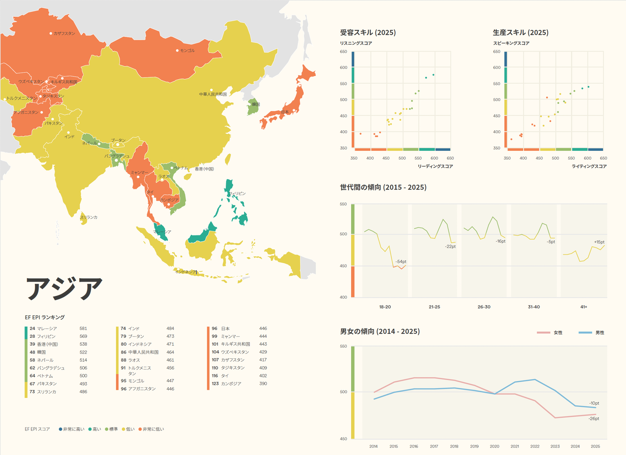 日本の英語力96位から動かず AI評価で可視化された「読めるが話せない」の正体 (EF EPI 2025)