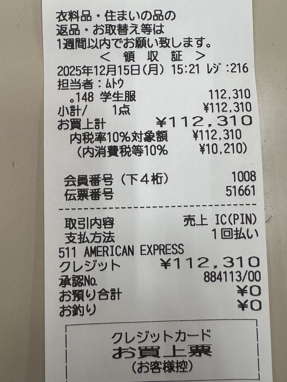 中学入学する息子の学生服を買いにきました、もう破産します…