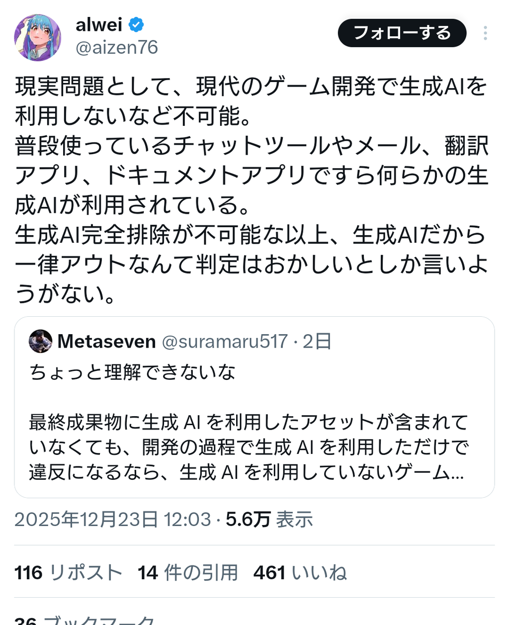 一流ゲームクリエイター「ゲーム開発から生成AIを排除することは不可能」