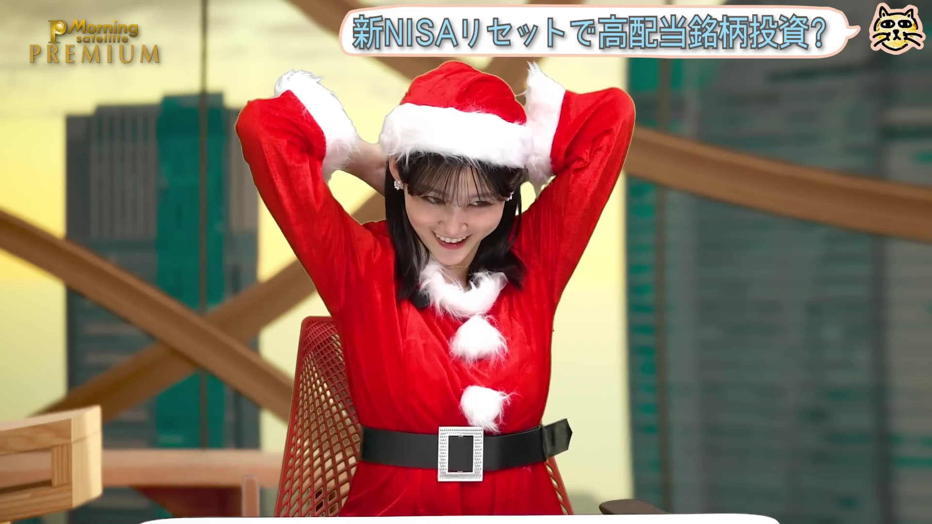 セクシーなサンタコスプレで登場した中原みなみアナが「苦しくなってきた」と言って後ろで留めていたクリップを外すと、首周りがユルユルになって肩紐がハミ出していました! GIF動画付きで! [2025年12月20日 モーサテわからん]
