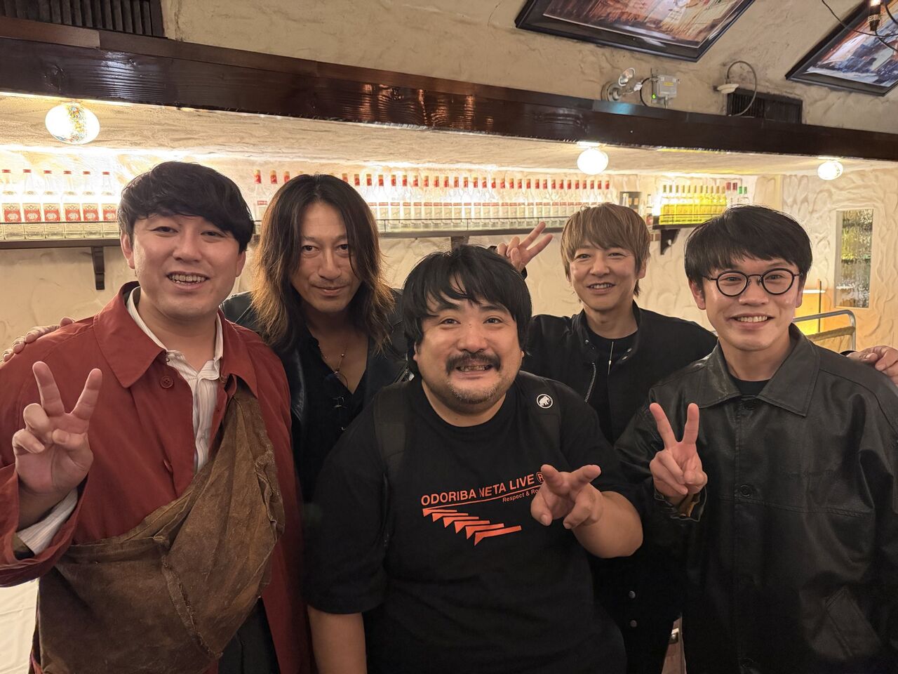 空気階段の鈴木もぐら、ちょんまげラーメンのきむとともに写るのはヴィジュアル系ロックバンド・GLAYのTAKUROとJIRO。予期せぬメンバーでの会食でネットを驚かせている。