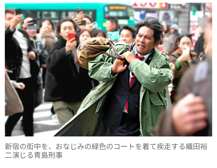 「この日は『踊る大捜査線』シリーズの最新作となる映画『踊る大捜査線 N.E.W.』(以下、『N.E.W.』)の撮影が行われていて、おなじみのモッズコートを着た織田さん演じる青島刑事が新宿歌舞伎町を走り抜けるシーンでした。本番前のテストで最初はスタントマンのかたが走っていたのですが、途中から織田さんが“自分がやる”と言い出し、何回も全力疾走。この作品に対する彼の覚悟を感じました」(映画制作関係者)