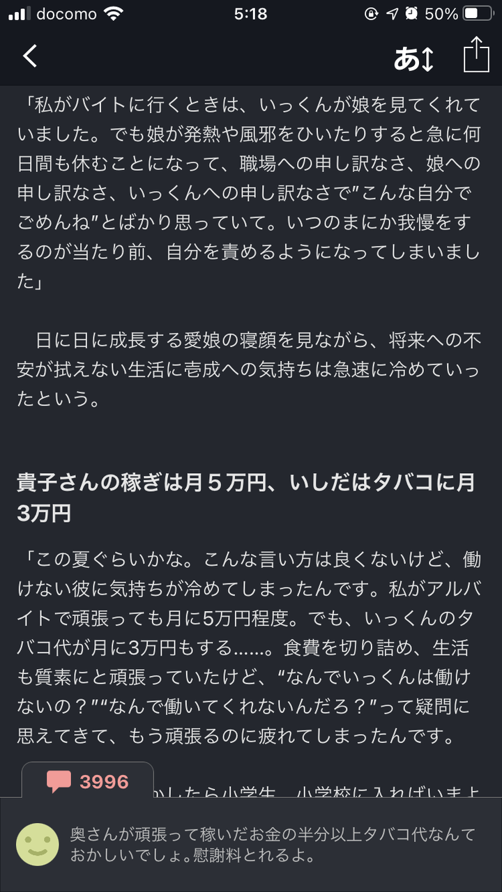 【これ酷くない?】 妻のバイト代、5万円、石田壱成のタバコ代3万→タバコ代で批判殺到wwwww