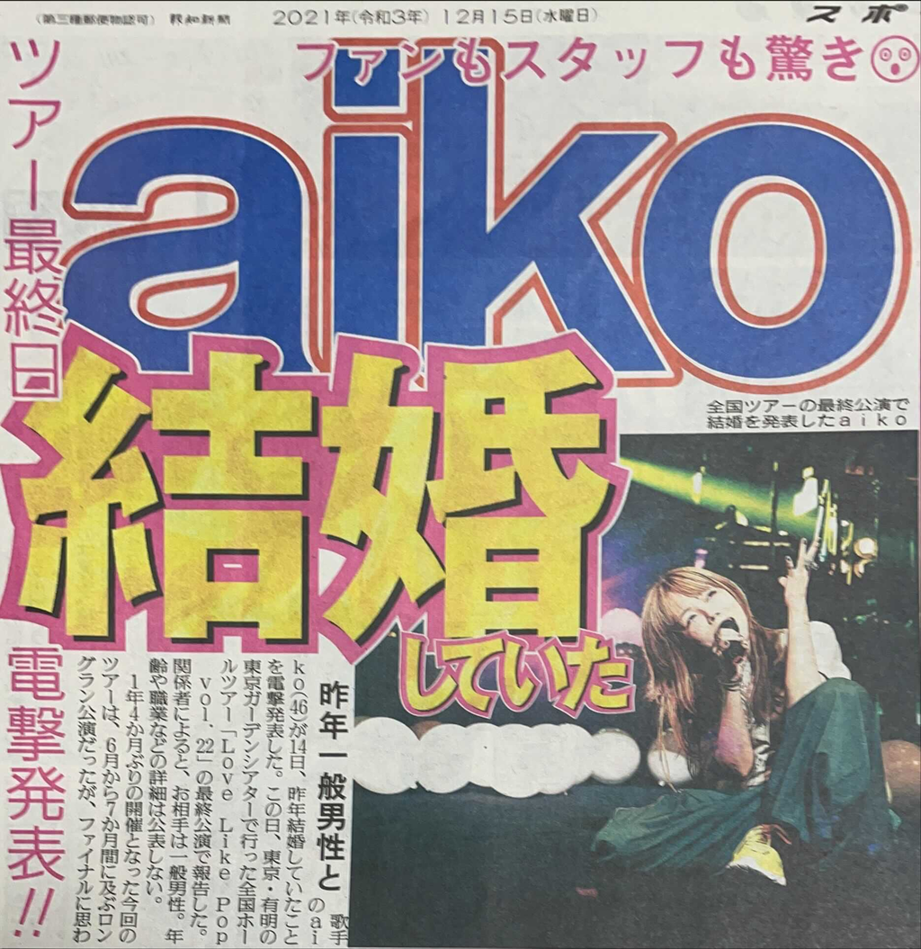 - aiko 一般男性と昨年結婚していた ライブでファンに電撃報告 スポーツ報知