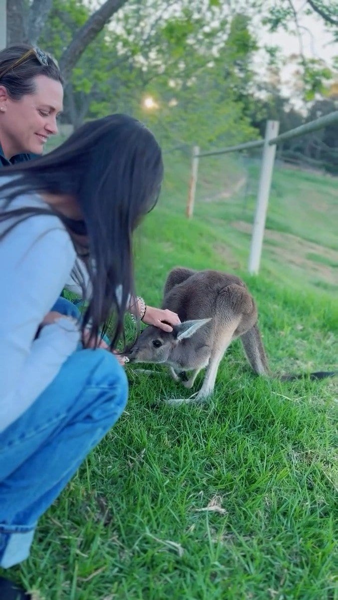 小西さんは「まさかの、カンガルーが敷地内に住んでいる、自然と共存されている方の所に伺えて、初めてカンガルーに触れました」と報告。