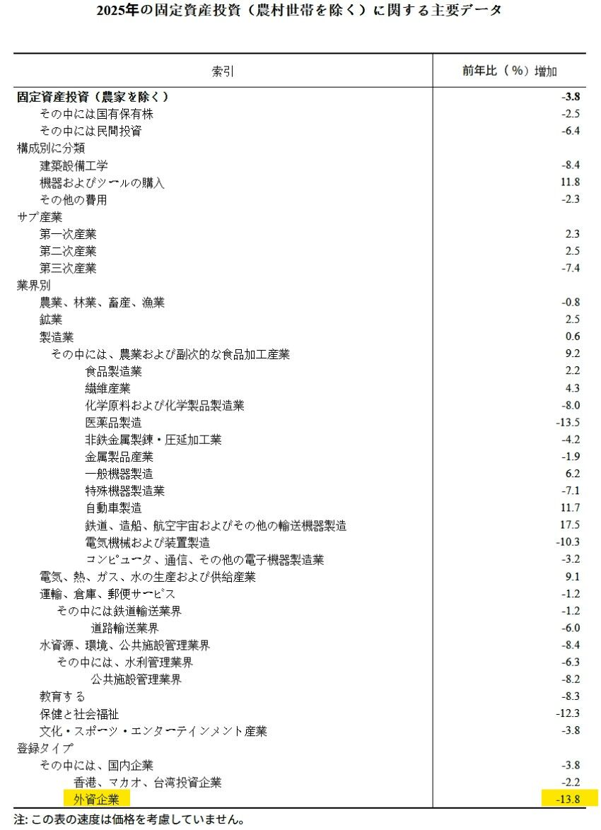 2025年の全国固定資産投資(農村世帯を除く)は48兆5,186億元で、対前年同期比3.8%減少した。