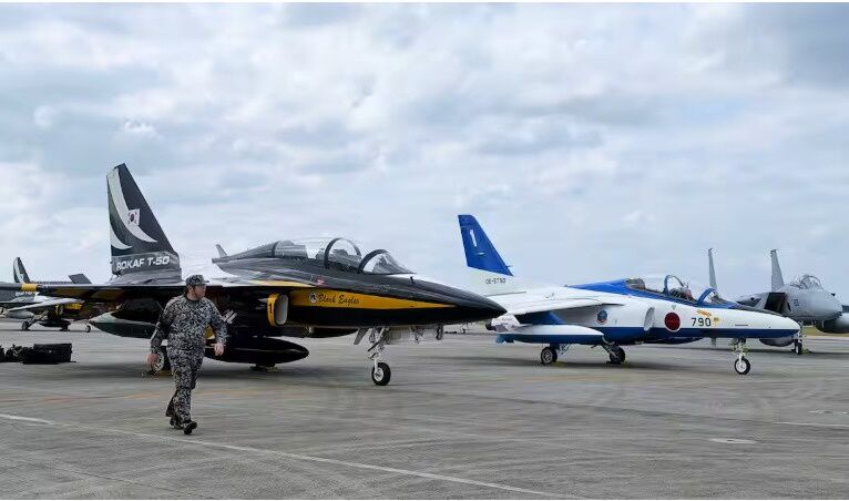 韓国空軍「ブラックイーグルス」が那覇基地に初着陸、初の給油支援実施 「ブルーインパルス」と交流