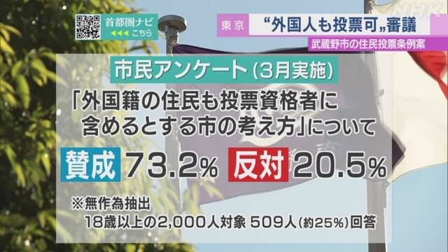 武蔵野市の条例案については、国会議員も含め市内外からの反対も多い。たとえ住民投票レベルであれ、外国人参政権に関する抵抗感は根強くある。