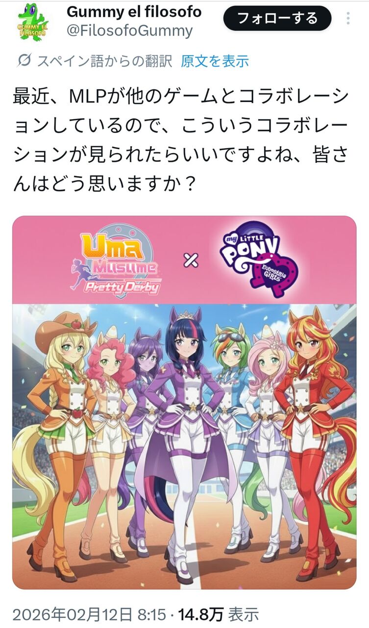 【悲報】外人「ウマ娘たのむ…マイリトルポニーとコラボしてくれぇぇ!!(AIポチー)」←大炎上