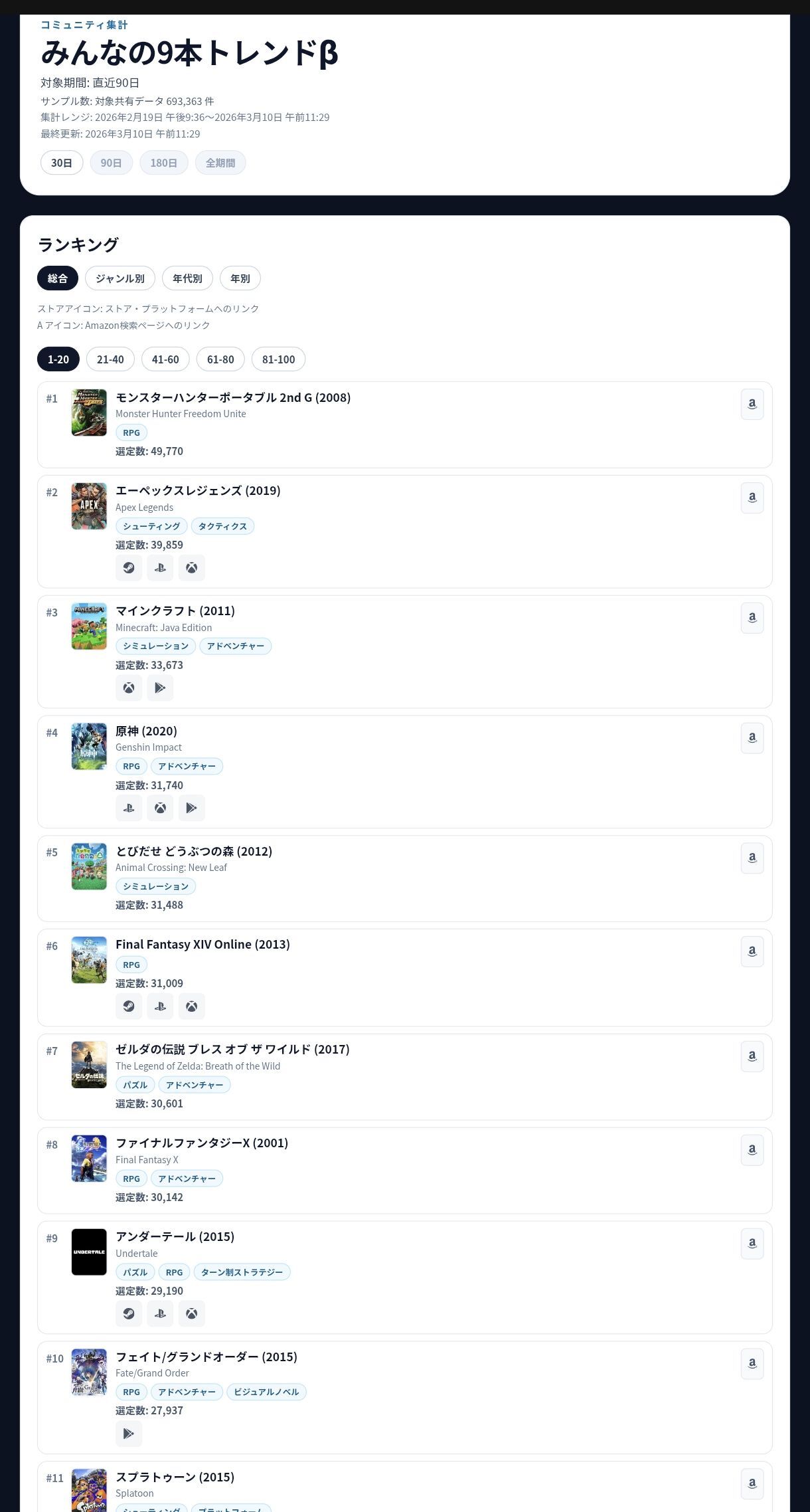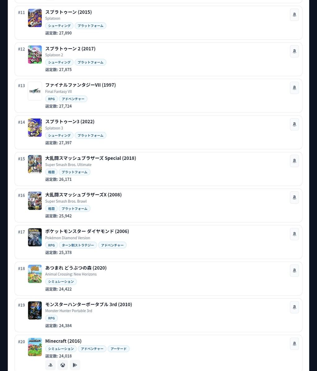 Xで大流行中の「私を構成する9つのゲーム」、総合ランキング1位はモンハン2ndGに!!