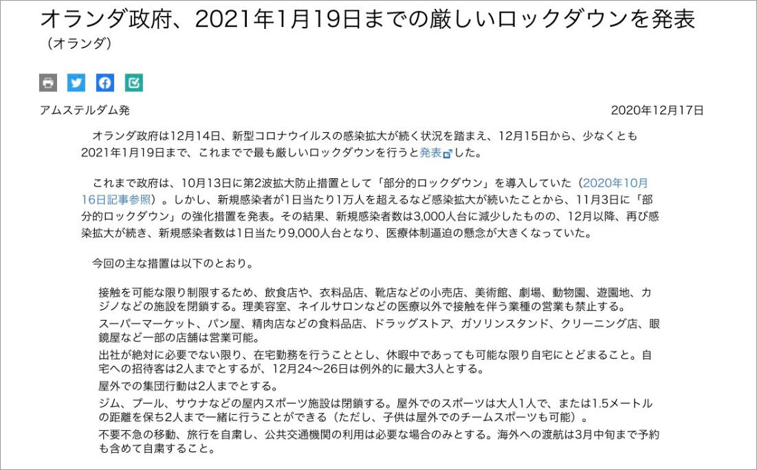 ヤバイ状況!!オランダ、年末休暇前にロックダウン!!