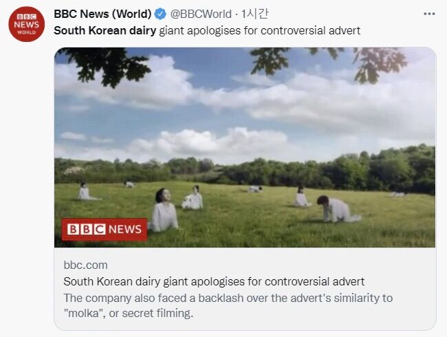 「韓国の大手牛乳メーカーが、女性を乳牛として描いたCMを公開し、SNS(会員制交流サイト)で非難を浴びた」