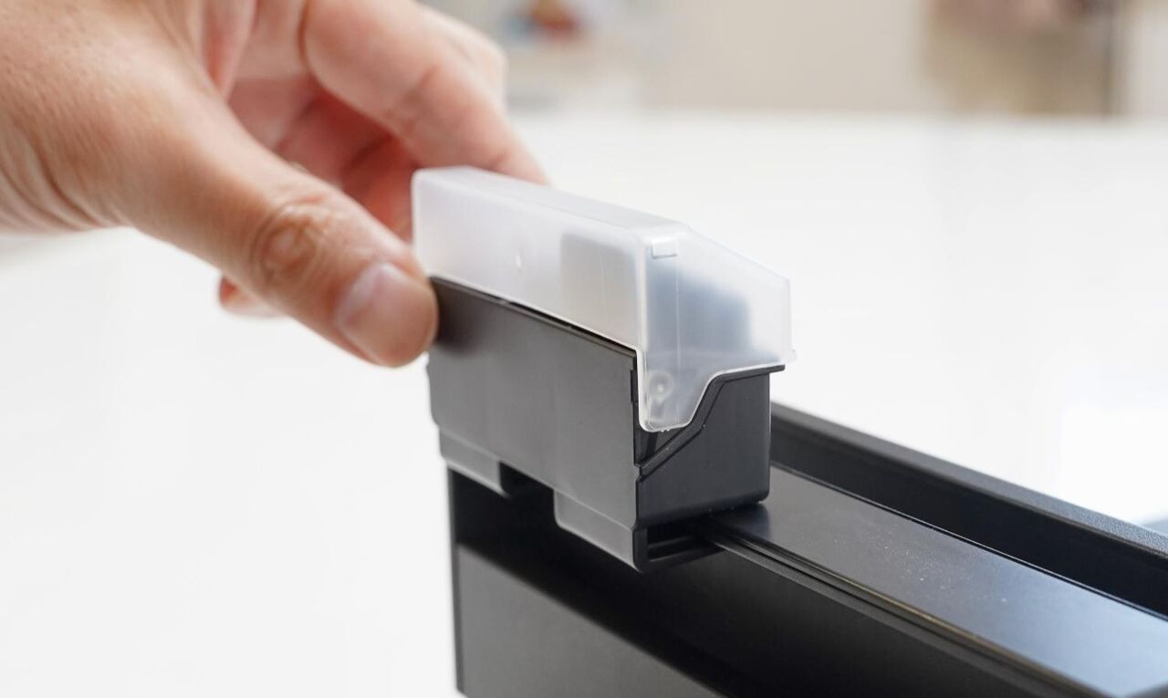 ケースは指でつまめるサイズで、作りとしてはかなりシンプル。上部にはホコリの侵入を防ぐためのフタが付いています。