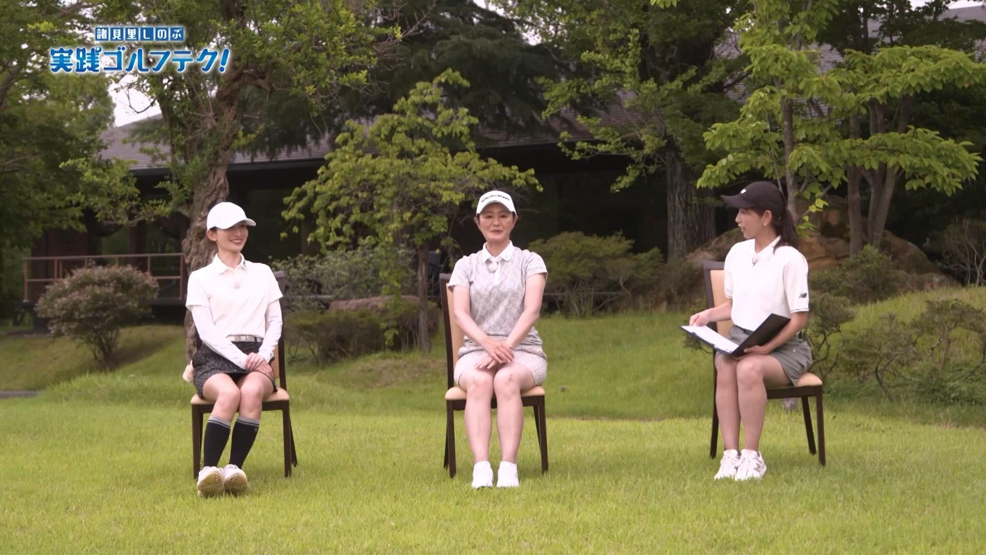 『諸見里しのぶ実践ゴルフテク!』でレッスンを受けた山本里菜アナは、プレイ中はミニスカの中にスパッツのようなものを履いていましたが、その後のトーク場面では履いていないように見えました! GIF動画x4&明るさ調整版付きで! [2026年3月15日、22日]