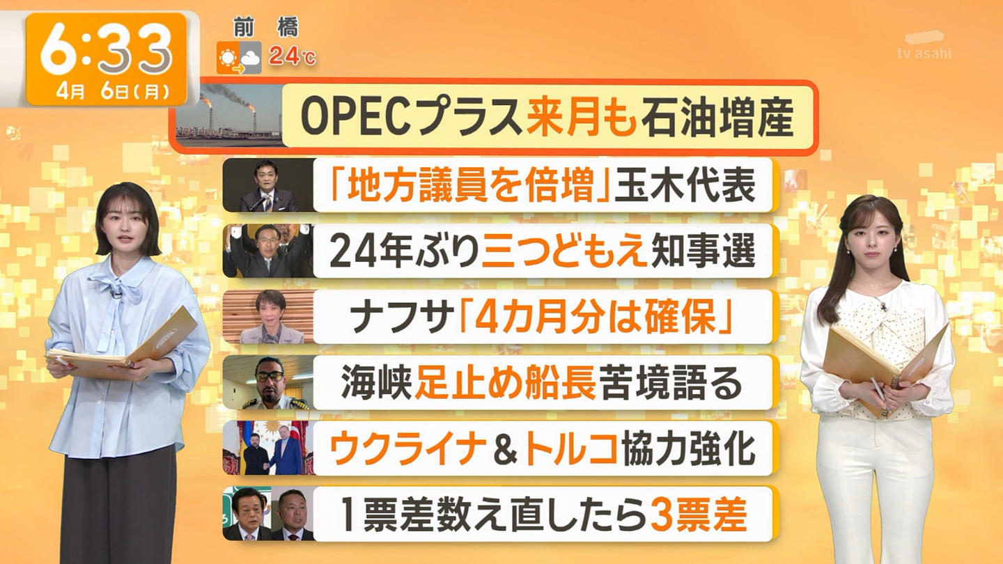 白ニットと白ピタパンの田原萌々アナを明るさ調整版付きで! [2026年4月7日、6日 グッド!モーニング]