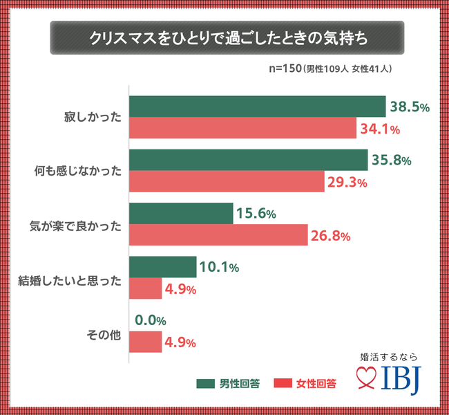 一方女性は、これに加えて「気が楽で良かった」(26.8%)という声も目立ち、クリスマスに対する考え方の違いがあらわれる結果に。
