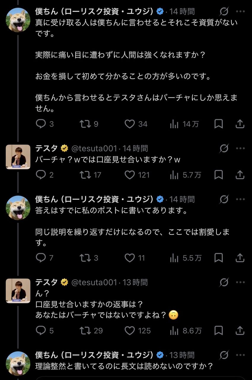 【悲報】投資家テスタ「じゃあお俺の口座晒すからお前も晒せよ」