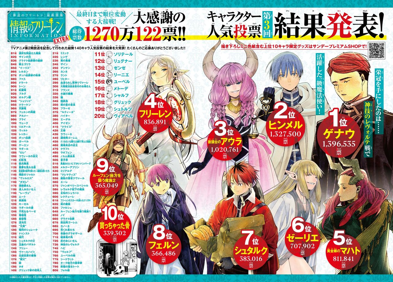 【悲報】『葬送のフリーレン』の人気投票、腐女子に敗北