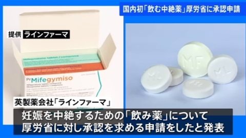 人工妊娠中絶を外科的な処置をせずに薬で行う「経口中絶薬」について、イギリスの製薬会社が国内での使用を認めるよう22日、厚生労働省に承認を申請しました。