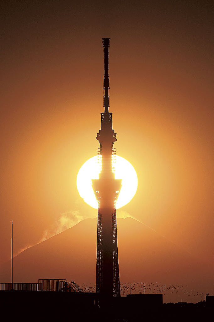 周りのビル、自然の景色、朝日、夕日、月など何でもコラボがサマになるのが、スカイツリー。